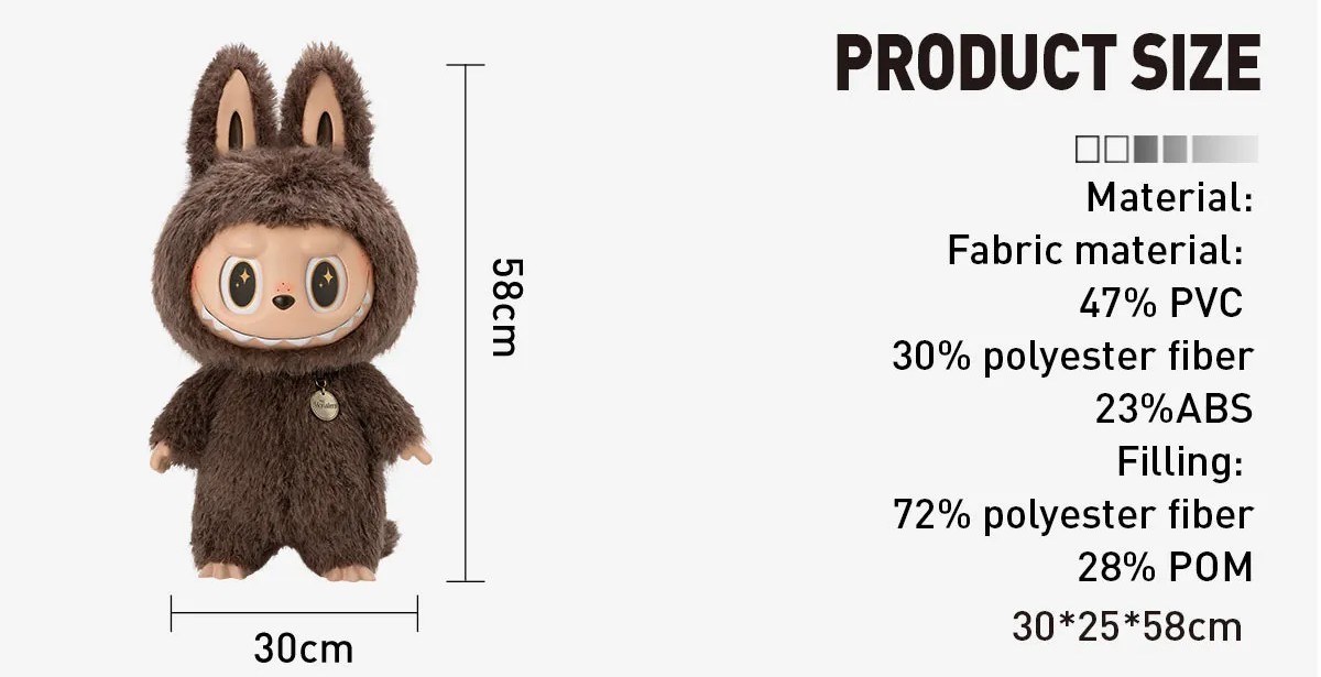 The “I Found You” Zimomo by Pop Mart is a 58 cm collectible figure from The Monsters series, designed by Kasing Lung, featuring Zimomo—the gentle sibling of Labubu—in a heartfelt reunion-inspired pose. Made from a mix of vinyl, PVC, ABS, and plush materials, it blends a soft body with a smooth vinyl face and includes thoughtful details such as a poseable tail for balance, and in some editions, accessories like a themed tote bag or sign.
